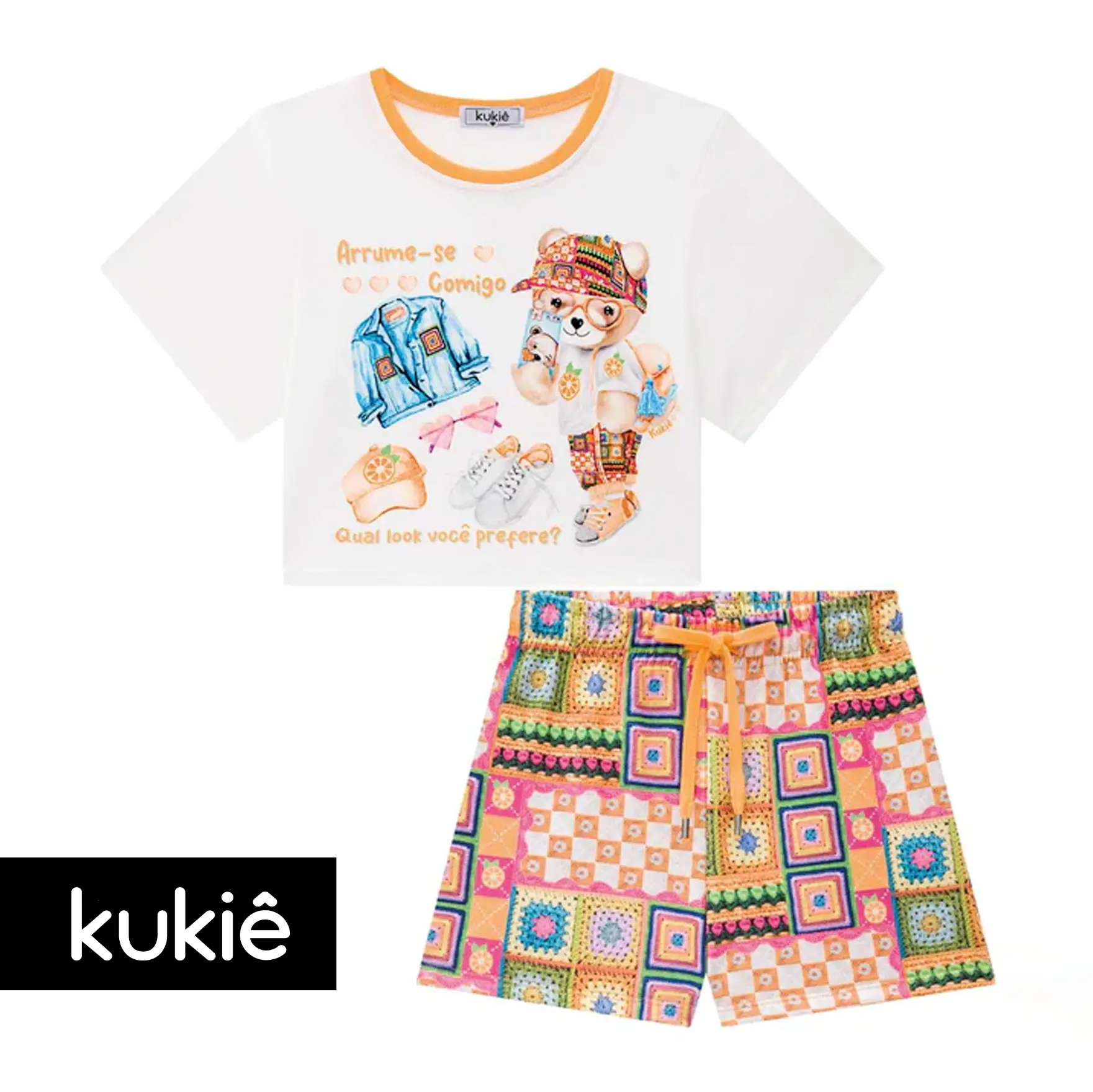 Conjunto Três e já Bata e Short Estampado
